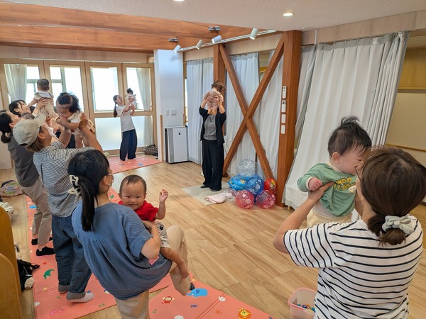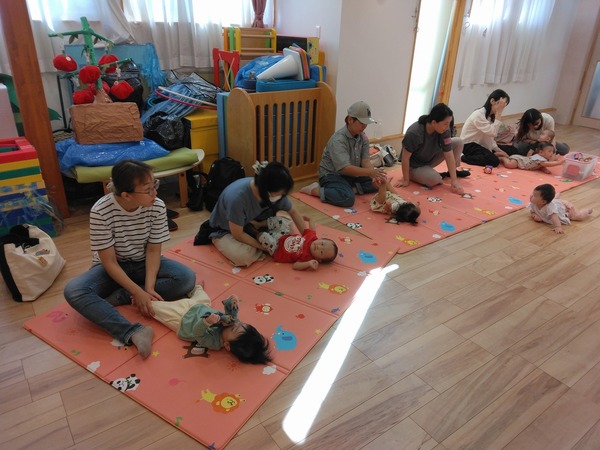 | ベビー交流会がありました😊 8組のベビちゃん達が参加してくださいました☆ マッサージでウォーミングアップをした後は歌に合わせてゆらゆらしたり、たかいたかいしてもらったり♪ ママ達はなかなかの運動量でしたが、ベビちゃん達の笑顔がたくさん見られて幸せでした♡♡ だっこのコツやハイハイへ移行する過程などを教えて頂けて実りある時間でした🥰 今年度のベビー交流会は本日で終わりです😢 参加いただいた皆様ありがとうございました✨ 次は11月11日に離乳食教室があります🌟 予約受付始まっておりますので気になる方はぜひご予約下さい🥰 | ||